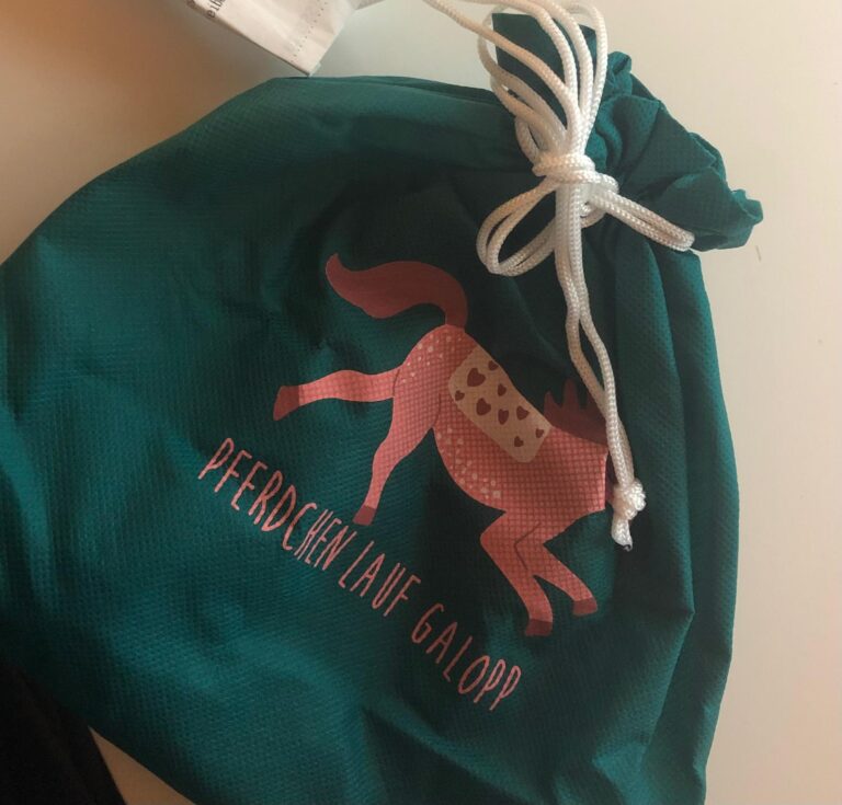 Beim ersten Eindruck der Pferdeleine von Jubi steht die Verpackung im Fokus. Die Pferdeleine wird in einem Nylonbeutel geliefert, der nicht nur den Inhalt sicher schützt, sondern auch umweltfreundlich ist, da auf den Einsatz von Plastik verzichtet wurde. Der Beutel war frei von Rissen und das darauf gedruckte Logo "Pferdchen mach Galopp" war einwandfrei lesbar. Besonders positiv fiel auf, dass das Produkt ohne zusätzlichen Pappkarton geliefert wurde, was den Verpackungsmüll reduziert. Das Design der Verpackung ist speziell auf die Zielgruppe, nämlich Kinder, abgestimmt. Spielerisch gestaltet mit einem galoppierenden Pferd, spricht es die jungen Reiter direkt an. Die Verarbeitung des Beutels erwies sich als hochwertig, ohne offene Nähte oder herausragende Fäden, was die Langlebigkeit des Produkts unterstützt. Hinweise zum Hersteller waren ebenfalls vorhanden und trugen zur Vertrauenswürdigkeit des Produkts bei. In Bezug auf den Produktumfang war alles vollständig. Sowohl das Geschirr als auch die Leine waren separat im Beutel verpackt und wirkten auf den ersten Blick solide. Details zu Material und Handhabung werden jedoch erst im Praxistest genauer untersucht und bewertet.